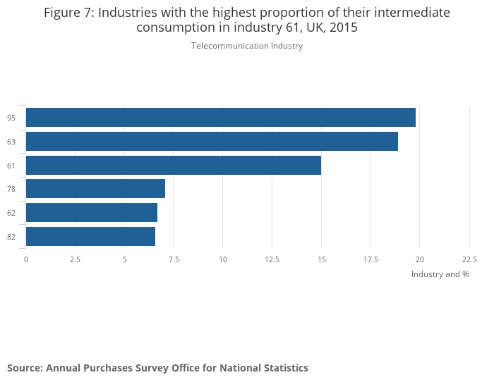 Figure 7: Industries with the highest proportion of their intermediate consumption in industry 61, UK, 2015
