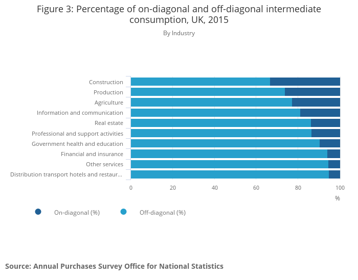 Download this chart Figure 3: Percentage of on-diagonal and off-diagonal intermediate consumption, UK, 2015