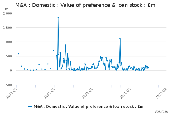 Download this time seriesM&A : Domestic : Value of preference & loan stock : £m