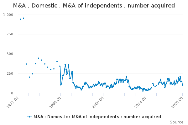 Download this time seriesM&A : Domestic : M&A of independents : number acquired