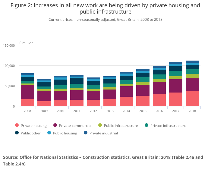 Source: Office for National Statistics – Construction statistics, Great Britain: 2018 (Table 3.1c)