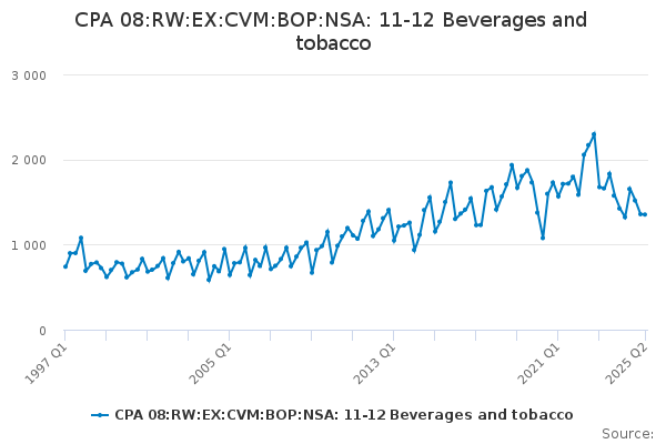 Download this time seriesCPA 08:RW:EX:CVM:BOP:NSA: 11-12 Beverages and tobacco