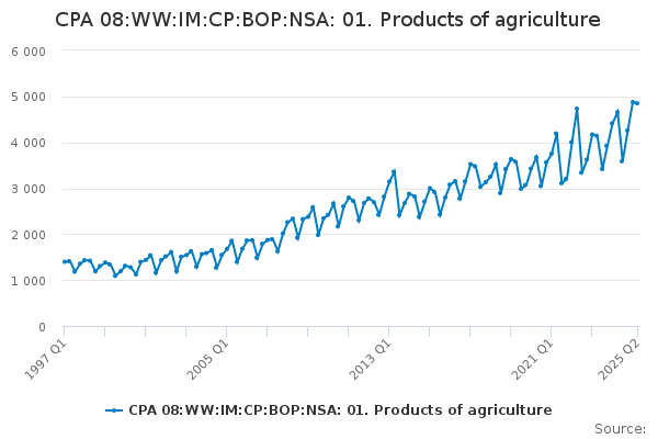 Download this time seriesCPA 08:WW:IM:CP:BOP:NSA: 01. Products of agriculture