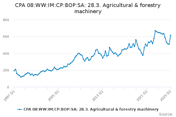 Download this time seriesCPA 08:WW:IM:CP:BOP:SA: 28.3. Agricultural & forestry machinery