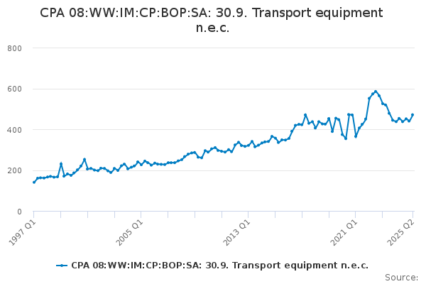 Download this time seriesCPA 08:WW:IM:CP:BOP:SA: 30.9. Transport equipment n.e.c.