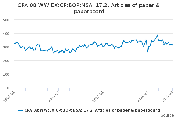 Download this time seriesCPA 08:WW:EX:CP:BOP:NSA: 17.2. Articles of paper & paperboard