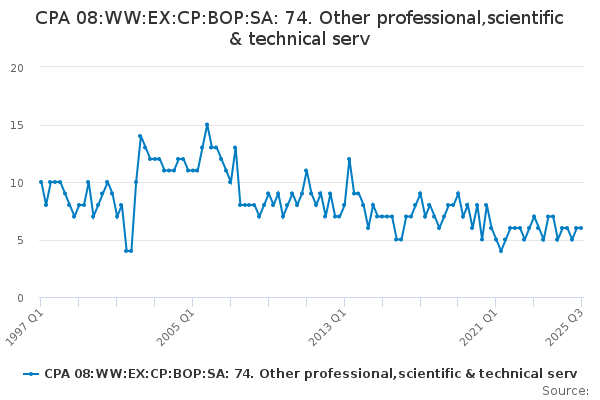 Download this time seriesCPA 08:WW:EX:CP:BOP:SA: 74. Other professional,scientific & technical serv