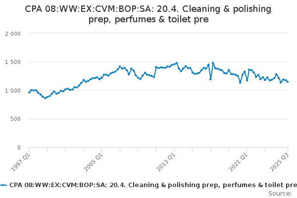 Download this time seriesCPA 08:WW:EX:CVM:BOP:SA: 20.4. Cleaning & polishing prep, perfumes & toilet pre