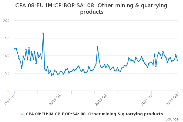 Download this time seriesCPA 08:EU:IM:CP:BOP:SA: 08. Other mining & quarrying products