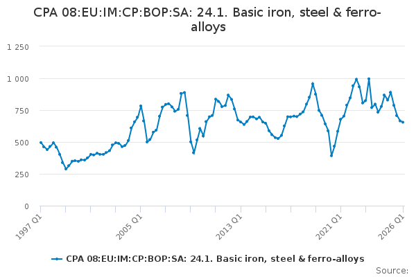 Download this time seriesCPA 08:EU:IM:CP:BOP:SA: 24.1. Basic iron, steel & ferro-alloys