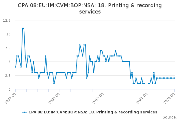 Download this time seriesCPA 08:EU:IM:CVM:BOP:NSA: 18. Printing & recording services