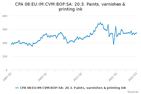 Download this time seriesCPA 08:EU:IM:CVM:BOP:SA: 20.3. Paints, varnishes & printing ink