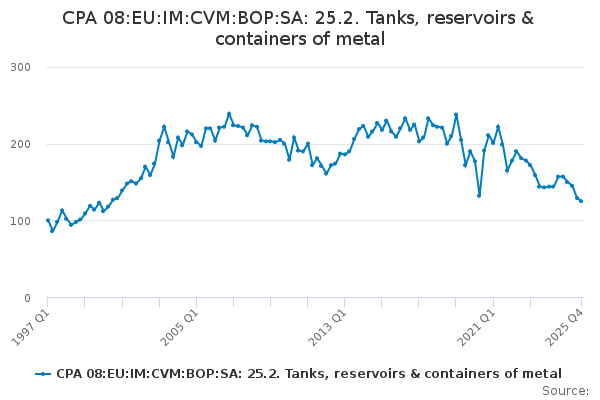 Download this time seriesCPA 08:EU:IM:CVM:BOP:SA: 25.2. Tanks, reservoirs & containers of metal