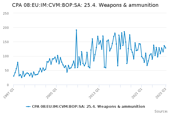 Download this time seriesCPA 08:EU:IM:CVM:BOP:SA: 25.4. Weapons & ammunition