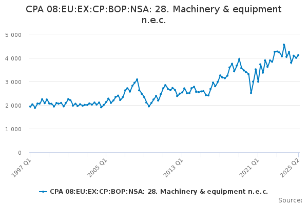 Download this time seriesCPA 08:EU:EX:CP:BOP:NSA: 28. Machinery & equipment n.e.c.