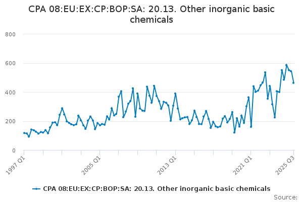 Download this time seriesCPA 08:EU:EX:CP:BOP:SA: 20.13. Other inorganic basic chemicals