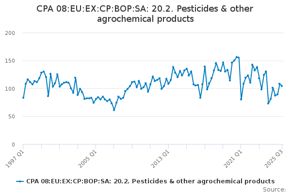 Download this time seriesCPA 08:EU:EX:CP:BOP:SA: 20.2. Pesticides & other agrochemical products