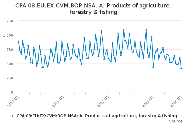 Download this time seriesCPA 08:EU:EX:CVM:BOP:NSA: A. Products of agriculture, forestry & fishing