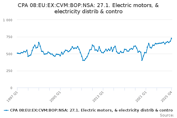 Download this time seriesCPA 08:EU:EX:CVM:BOP:NSA: 27.1. Electric motors, & electricity distrib & contro