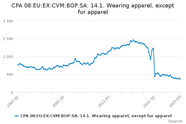 Download this time seriesCPA 08:EU:EX:CVM:BOP:SA: 14.1. Wearing apparel, except fur apparel