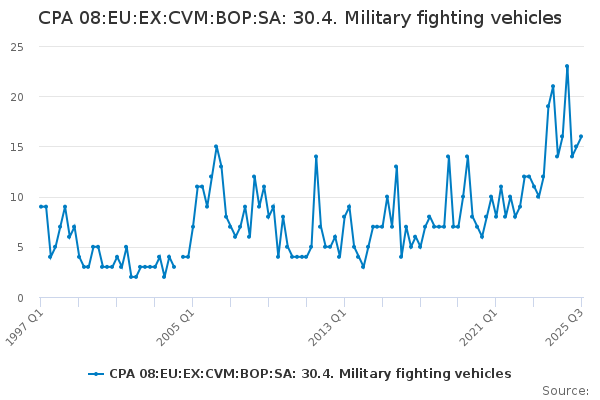 Download this time seriesCPA 08:EU:EX:CVM:BOP:SA: 30.4. Military fighting vehicles