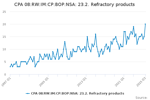 Download this time seriesCPA 08:RW:IM:CP:BOP:NSA: 23.2. Refractory products