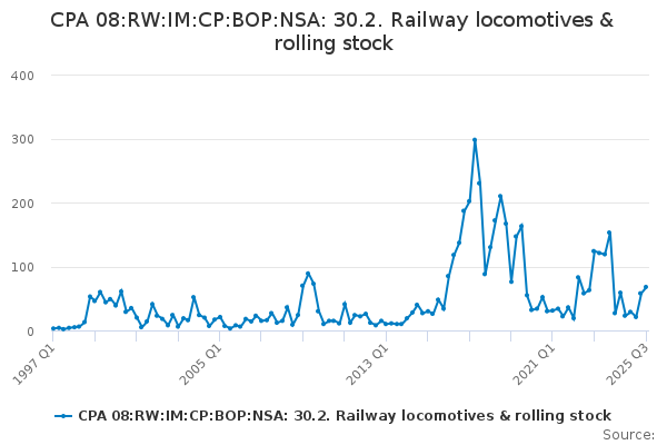 Download this time seriesCPA 08:RW:IM:CP:BOP:NSA: 30.2. Railway locomotives & rolling stock
