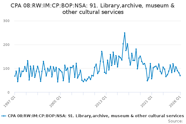 Download this time seriesCPA 08:RW:IM:CP:BOP:NSA: 91. Library,archive, museum & other cultural services