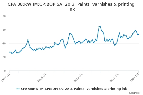 Download this time seriesCPA 08:RW:IM:CP:BOP:SA: 20.3. Paints, varnishes & printing ink