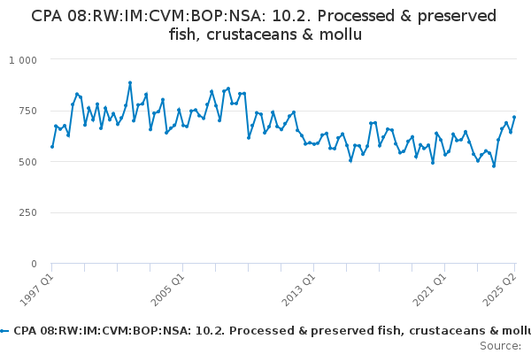 Download this time seriesCPA 08:RW:IM:CVM:BOP:NSA: 10.2. Processed & preserved fish, crustaceans & mollu