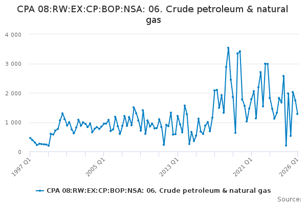 Download this time seriesCPA 08:RW:EX:CP:BOP:NSA: 06. Crude petroleum & natural gas