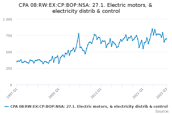 Download this time seriesCPA 08:RW:EX:CP:BOP:NSA: 27.1. Electric motors, & electricity distrib & control
