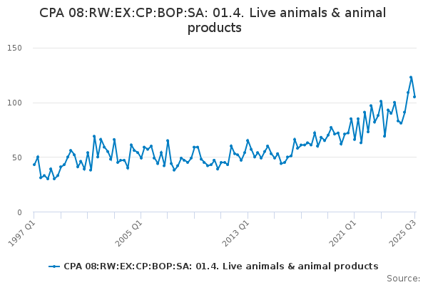 Download this time seriesCPA 08:RW:EX:CP:BOP:SA: 01.4. Live animals & animal products