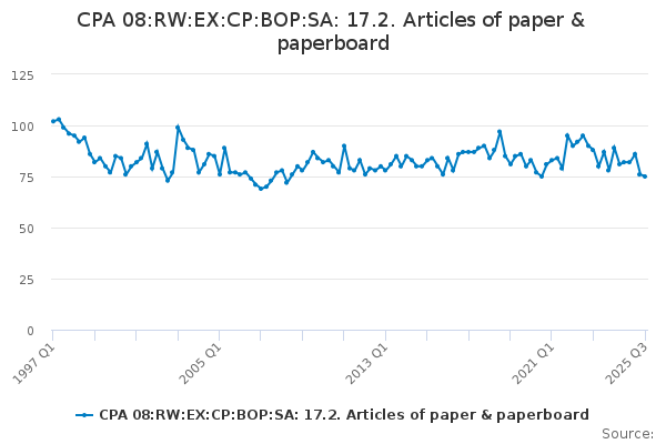Download this time seriesCPA 08:RW:EX:CP:BOP:SA: 17.2. Articles of paper & paperboard