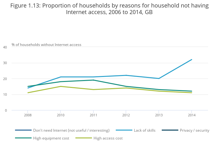 ONS first collected detailed statistics on Internet access in 1998. Since then, a number of changes have been made to the survey, including the publication of annual results from 2006. The latest published results are for 20145.