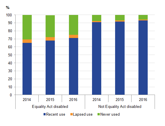 Download this image Figure 6: Internet use and non-use by disability status, 2014 to 2016, UK