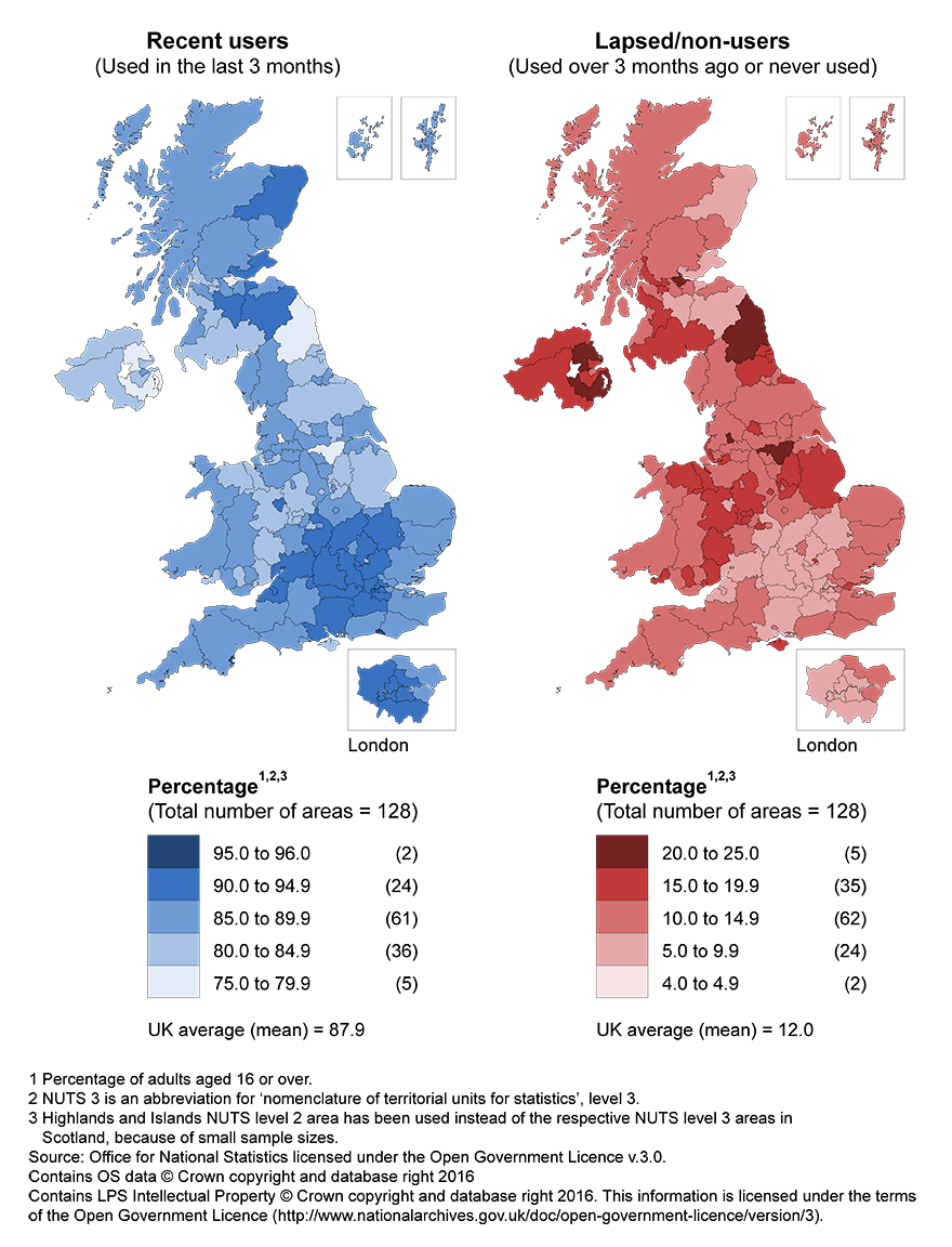 Download this image Figure 7: Internet use, 2016 by NUTS3 area, UK