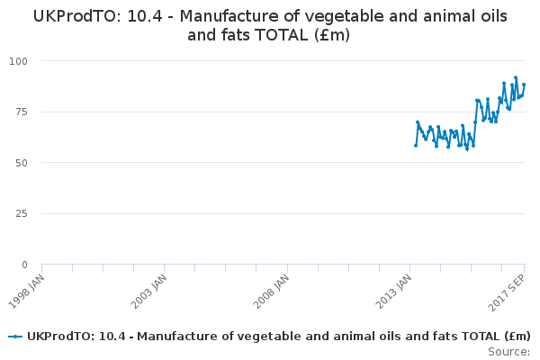 Download this time seriesUKProdTO: 10.4 - Manufacture of vegetable and animal oils and fats TOTAL (£m)