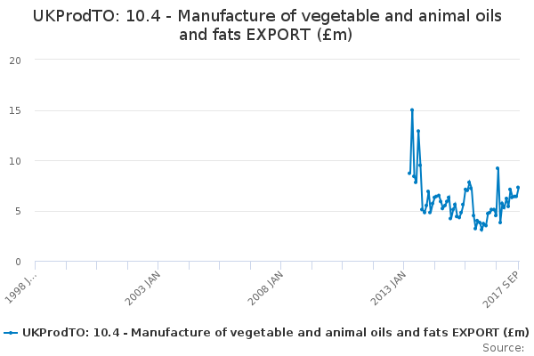 Download this time seriesUKProdTO: 10.4 - Manufacture of vegetable and animal oils and fats EXPORT (£m)