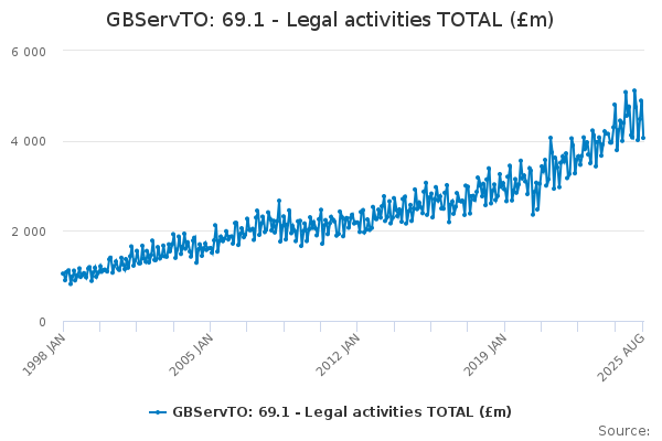 Download this time seriesGBServTO: 69.1 - Legal activities TOTAL (£m)