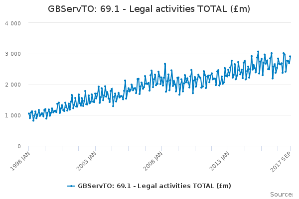 Download this time seriesGBServTO: 69.1 - Legal activities TOTAL (£m)