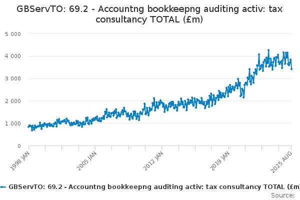Download this time seriesGBServTO: 69.2 - Accountng bookkeepng auditing activ: tax consultancy TOTAL (£m)