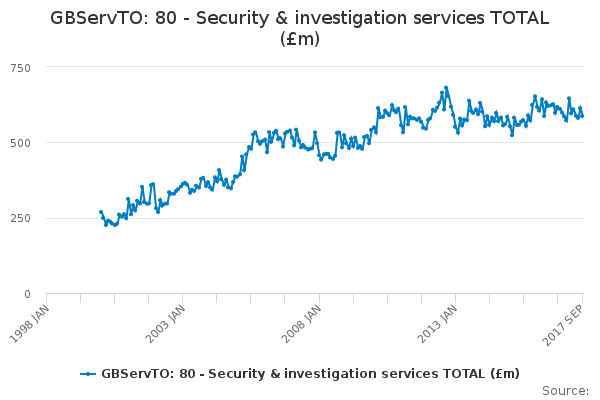 Download this time seriesGBServTO: 80 - Security & investigation services TOTAL (£m)