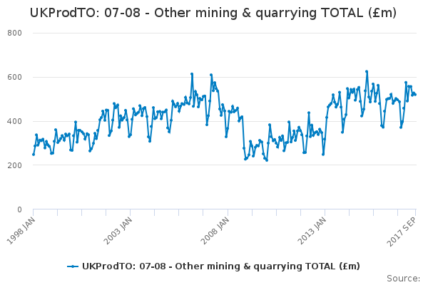 Download this time seriesUKProdTO: 07-08 - Other mining & quarrying TOTAL (£m)