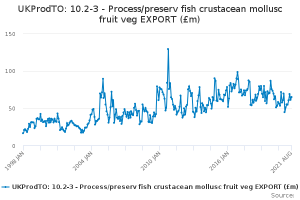 Download this time seriesUKProdTO: 10.2-3 - Process/preserv fish crustacean mollusc fruit veg EXPORT (£m)