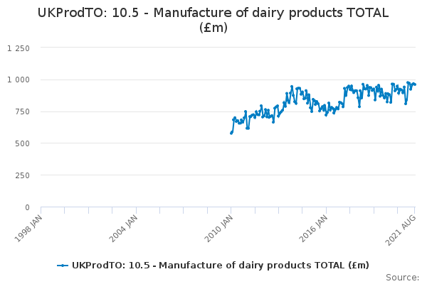 Download this time seriesUKProdTO: 10.5 - Manufacture of dairy products TOTAL (£m)