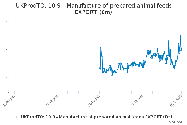 Download this time seriesUKProdTO: 10.9 - Manufacture of prepared animal feeds EXPORT (£m)