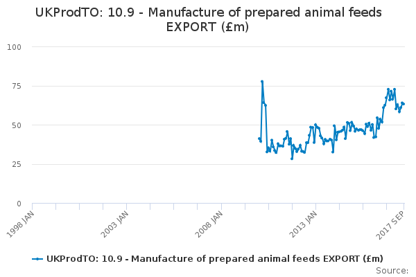 Download this time seriesUKProdTO: 10.9 - Manufacture of prepared animal feeds EXPORT (£m)
