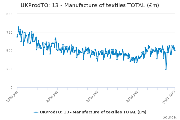 Download this time seriesUKProdTO: 13 - Manufacture of textiles TOTAL (£m)