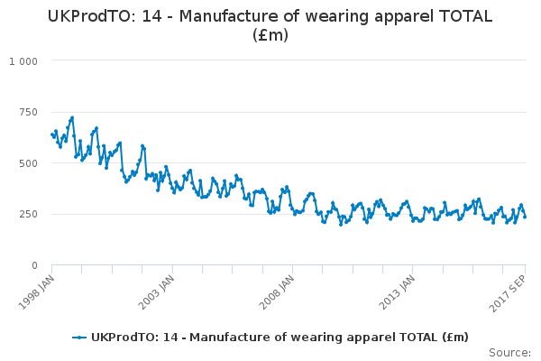 Download this time seriesUKProdTO: 14 - Manufacture of wearing apparel TOTAL (£m)